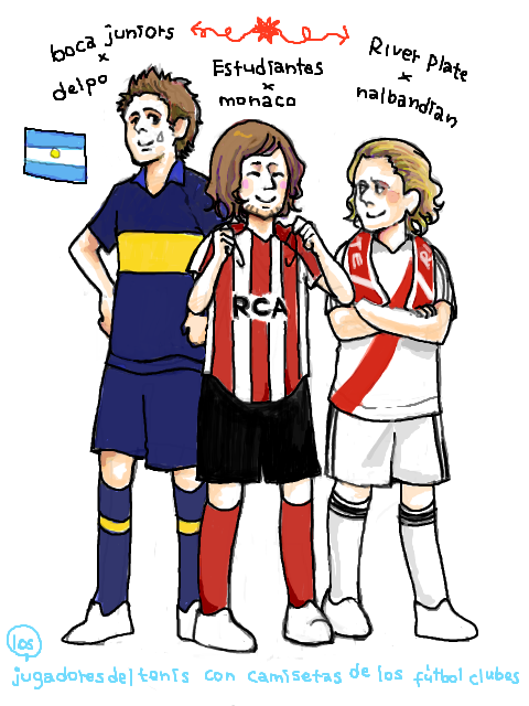 アルヘンのテニス選手に、自分の応援しているサッカーチームのユニを着せてみたら、という非常にマニアックきわまりないコンセプト。デルポはボカ、モナコ兄ちゃんはエストゥディアンテス、ナルバンディアン先輩はリーベルのサポだそうで。ピコさんなんか足にエストゥディアンテスのエンブレム掘ってるよね……。